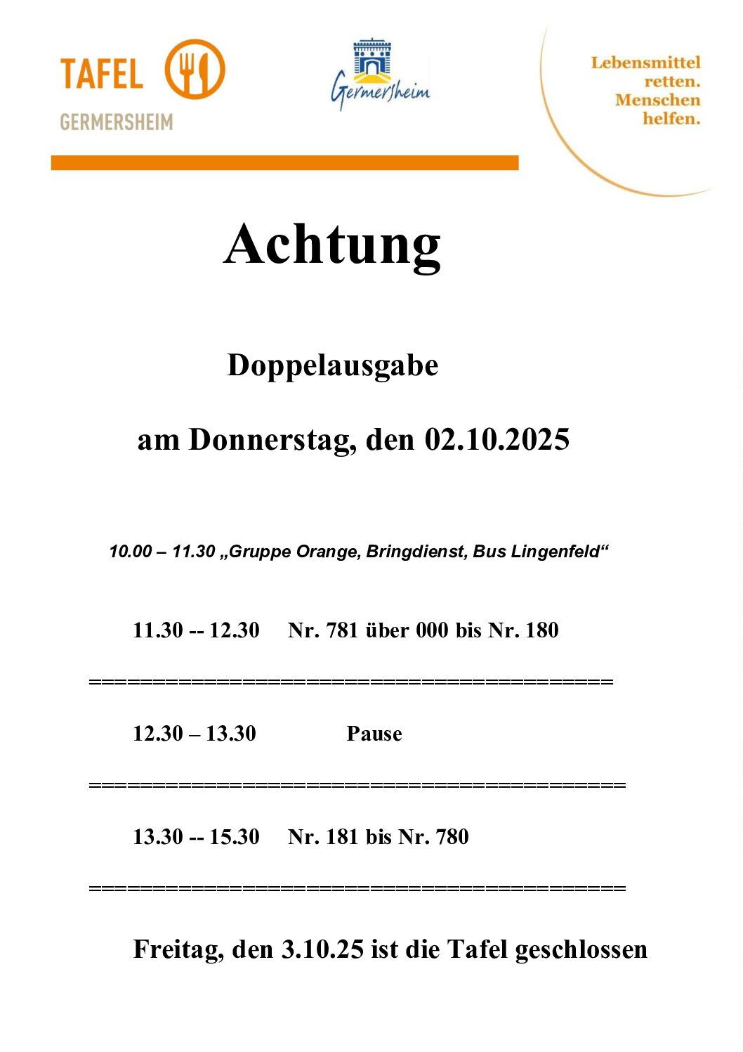 Wir freuen uns und unsere Bedürftigen werden es Ihnen danken, wenn Sie die Tafel Germersheim e.V. mit Spenden oder Ihrer persönlichen Mitgliedschaft unterstützen.